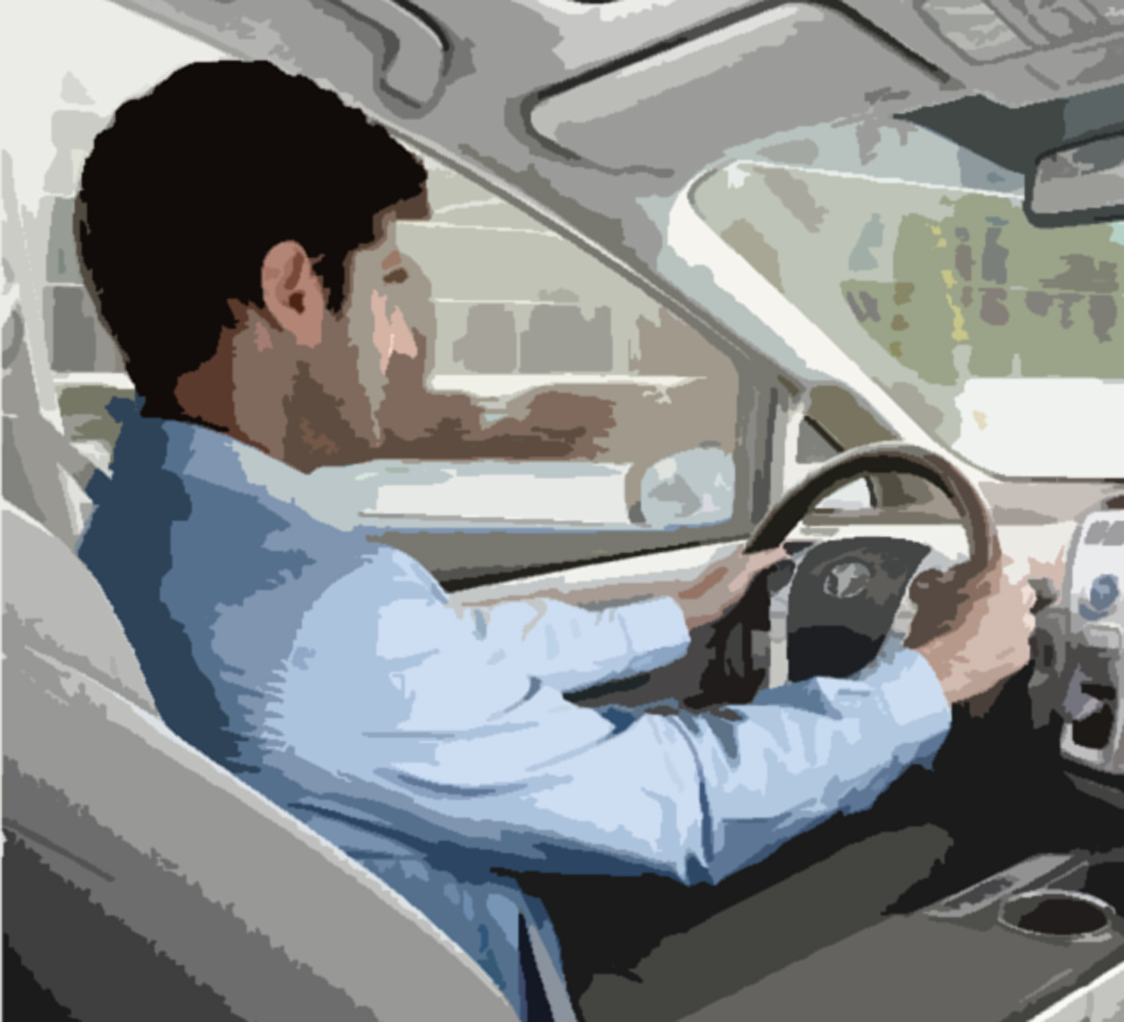 Antonio, atrincherado en su coche, mira sin tener conciencia de lo que ve.