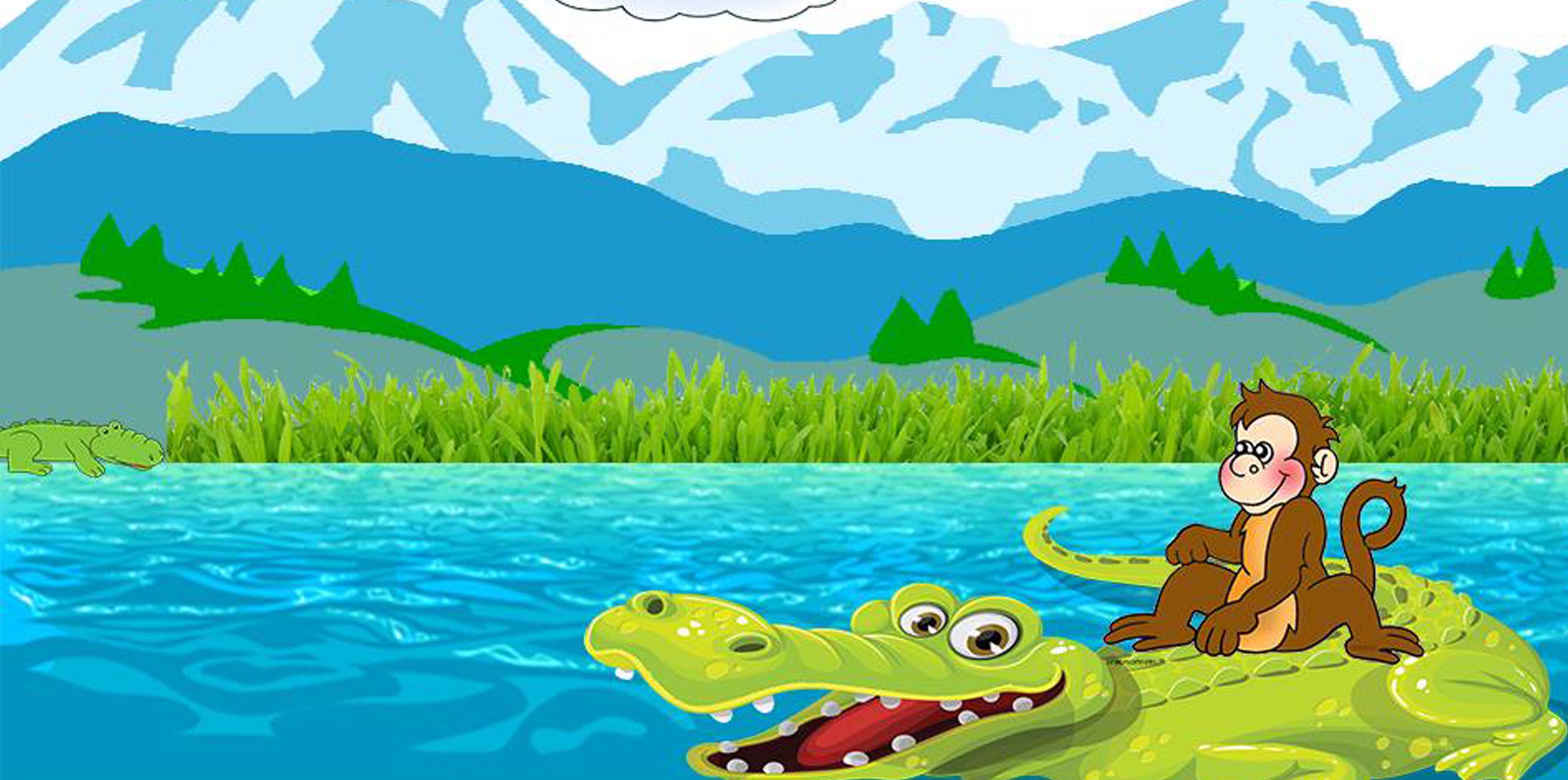 El cocodrilo, aunque triste, obedeció. Invitó al mono a su casa al otro lado del río: “Ven conmigo, te llevaré en mi espalda. Mi esposa quiere conocerte”. El mono, emocionado, saltó sobre la espalda del cocodrilo y cruzaron el río.